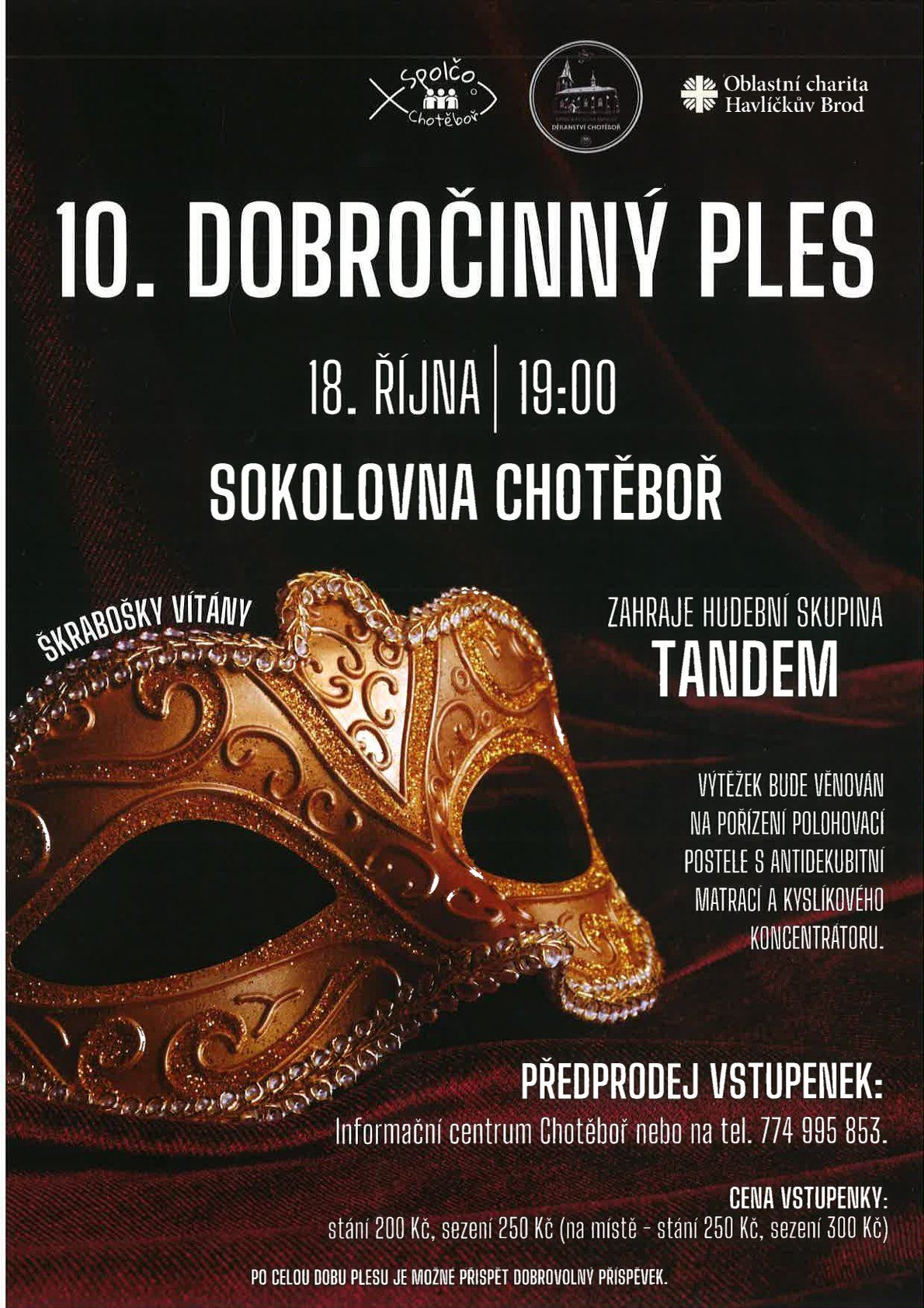 K tanci a poslechu zahraje kapela TANDEM na nebude chybět bohatá tombola. Výtěžek z plesu bude věnován na pořízení polohovacích postelí.