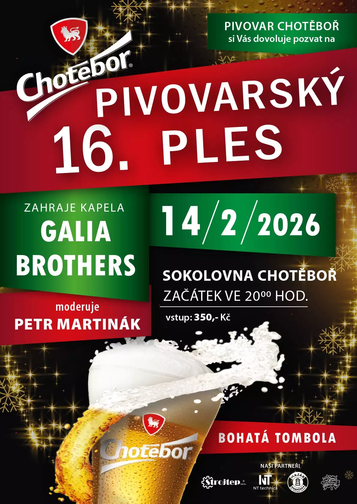 Plesová sezóna je v plném proudu a opět po roce se v sobotu 14.2.2026 v chotěbořské Sokolovně uskuteční již 16. Pivovarský ples.