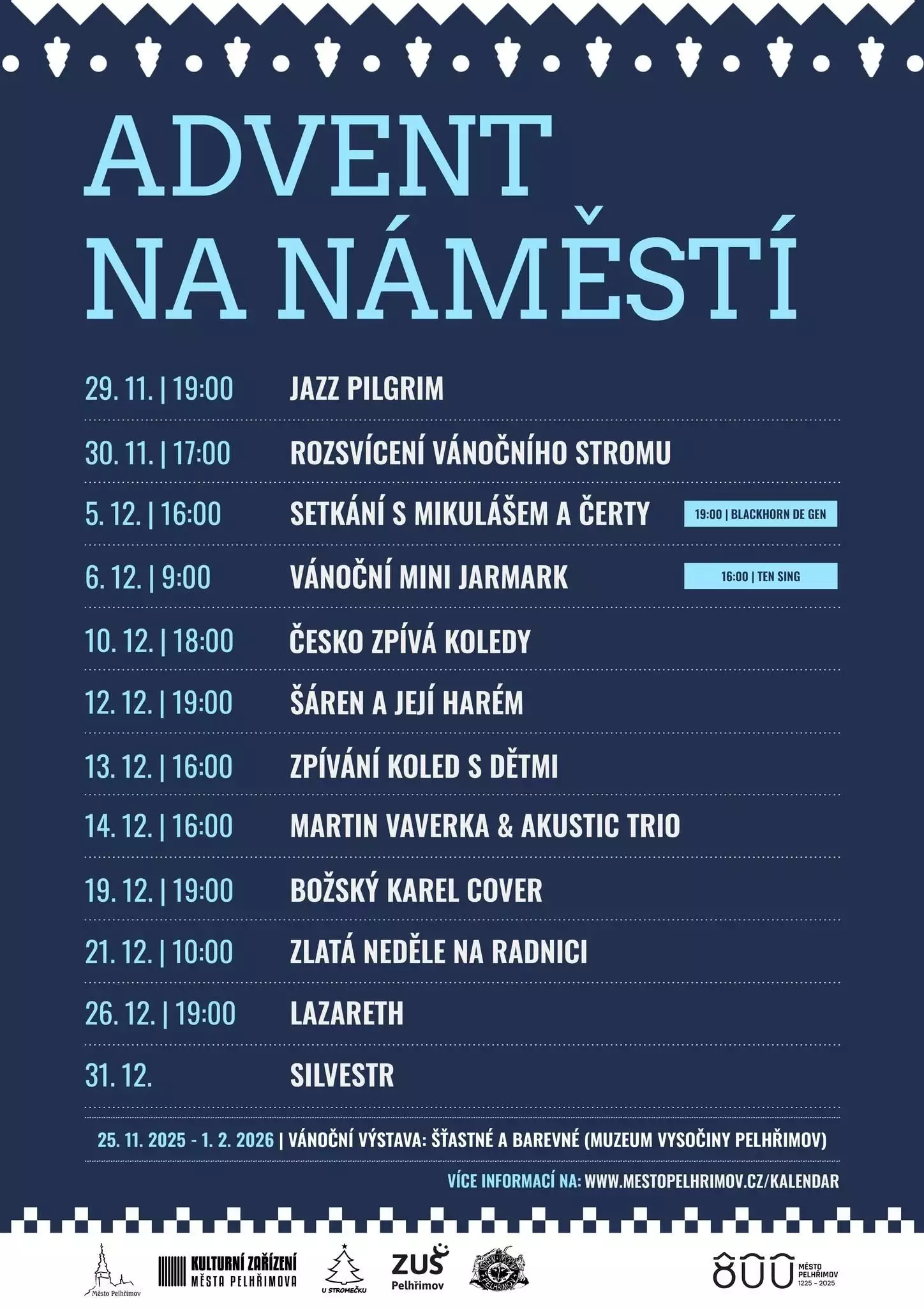 Zveme vás na Advent naměstí, kde na vás čeká příjemná zimní atmosféra, vůně perníčků svářáku a hřejivé světlo svíček. Náměstí se promění v útulné místo plné tradic, hudby a předvánoční pohody.