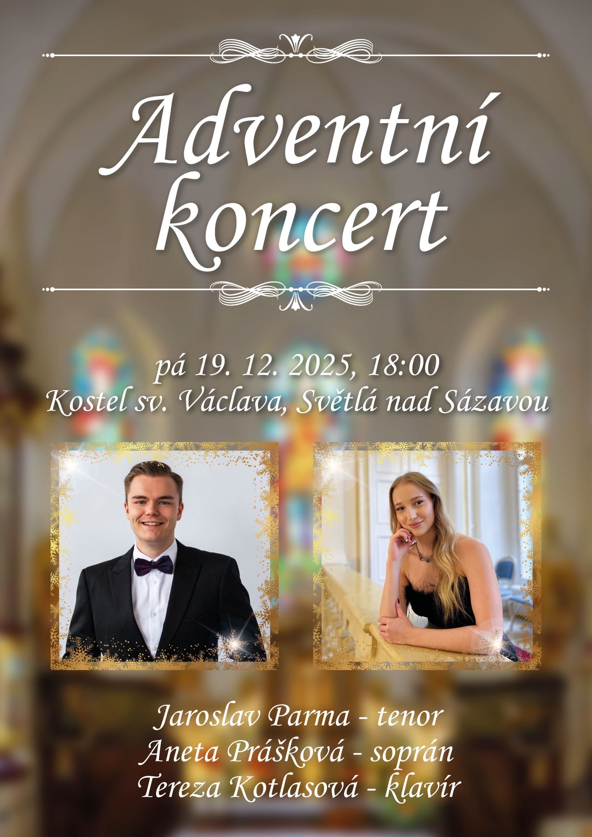 Srdečně vás zveme na Adventní koncert, kde zazní tradiční i moderní vánoční skladby.