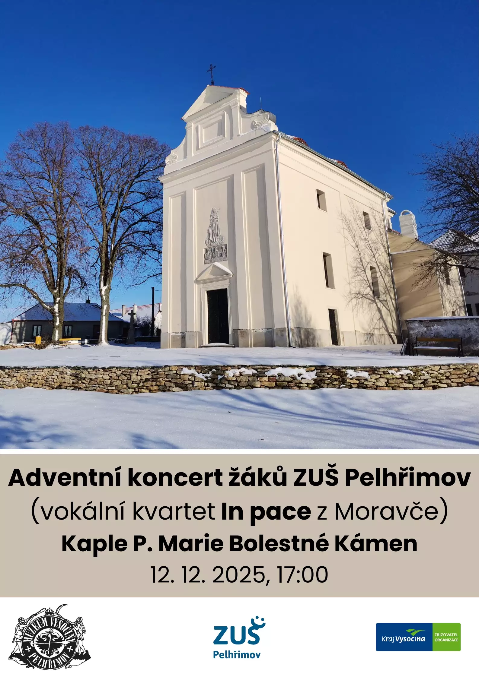 V tomto krásném komortním prostotru zazní skladby v podání talentovaných žáků Základní umělecké školy Pelhřimov. Součástí programu bude také vystoupení vokálního kvartetu In pace z Moravče, který obohatí večer svým jedinečným hudebním projevem. Koncert slibuje neopakovatelnou atmosféru adventního času v půvabném prostředí historické kaple.