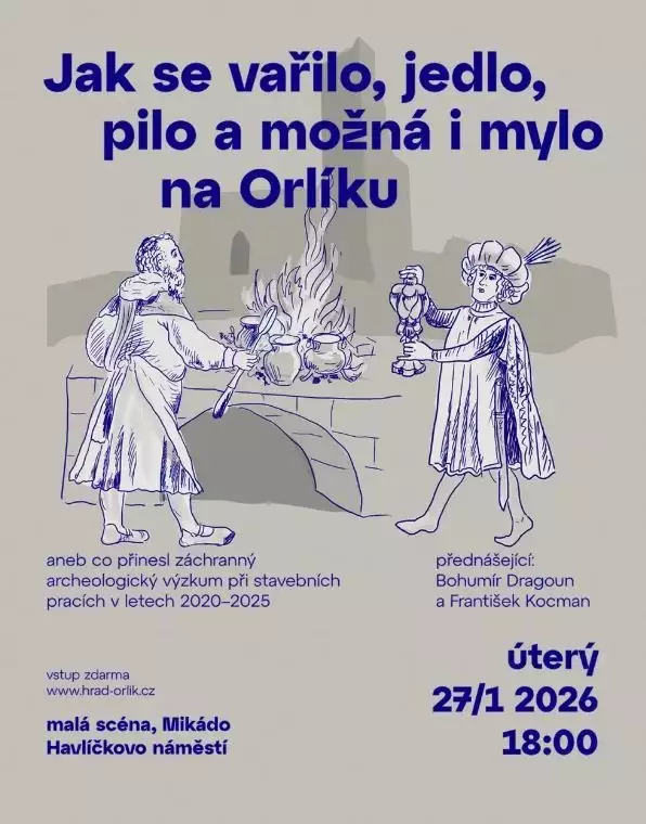 Chcete se dozvědět, jak se vařilo, jedlo, pilo a možná i mylo na Orlíku? Pak si nenechte ujít přednášku o archeologickém výzkumu, který byl realizován při stavebních pracích v letech 2020-2025.