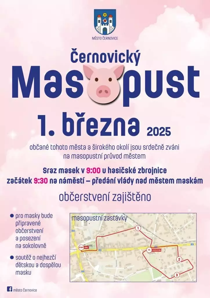 Masopustní veselí je po roce opětř tady a i naším městem projde průvod masek. Přijďte si užít živou hudbu, dobré jídlo a hlavně skvělou atmosféru. Budeme se společně veselit!