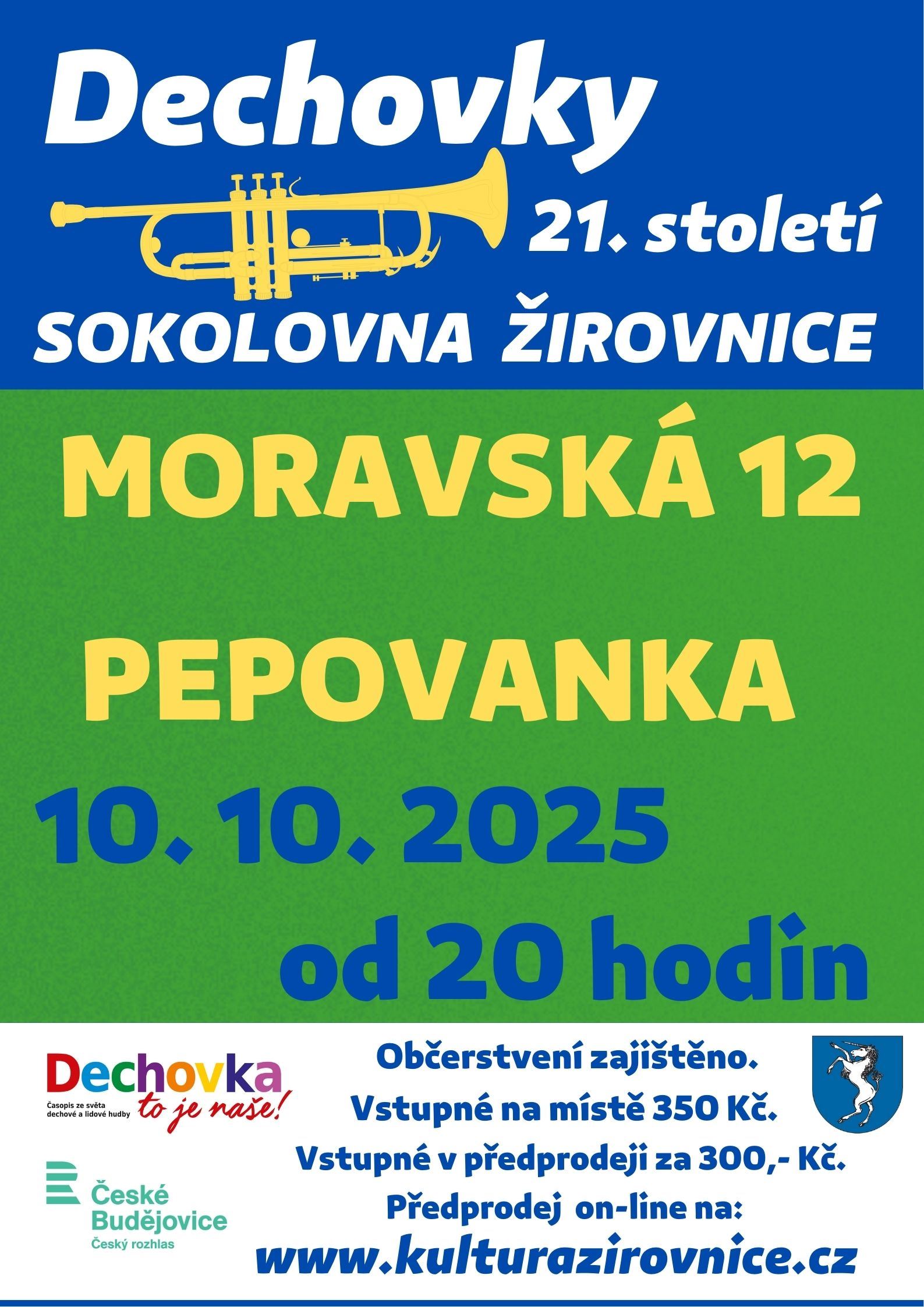 Čeká vás výběr nejlepších lidových hudeb - představí se a zahraje MORAVSKÁ 12 a PEPOVANKA.