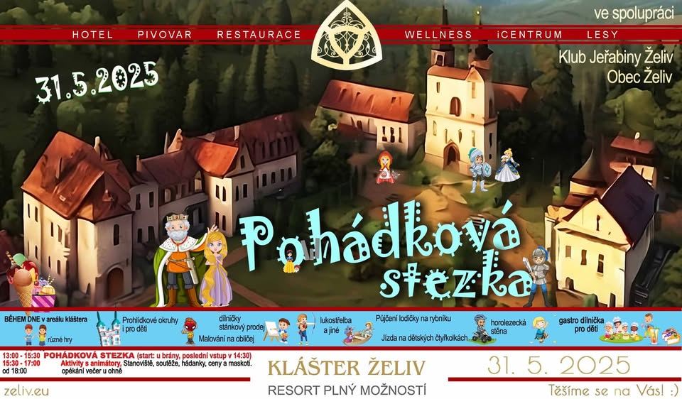 Přijďte si s rodinou užít nezapomenutelné odpoledne v Resortu Klášter Želiv! Na Den dětí jsme pro vás připravili pohádkovou stezku plnou dobrodružství, skvělé atrakce pro děti a mnoho dalšího! Začínáme v sobotu 31. května od 13:00, tak si tuto událost rozhodně nenechte ujít.