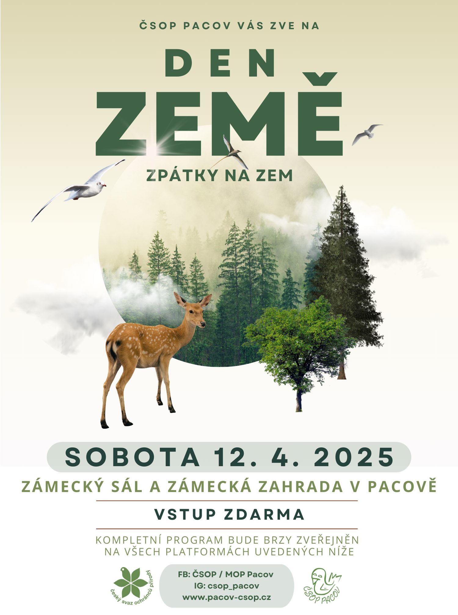 Přijďte oslavit Den Země do Pacova! V překrásných prostorách zámku a zámecké zahradě bude oslava důstojná a těšit se můžete na bohatý program pod vedením ČSOP Pacov.