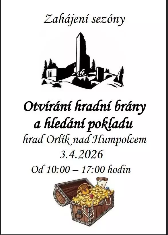 Udělejte si výlet na Velký pátek a přijďte na Orlík! Pro dětské i dospělé návštěvníky hradu je je připravena pohádková kvízová hra. Po správném vyluštění se otevře truhla s pokladem a budete si moci něco z tohoto něco uzmout do svého vlastnictví. Budeme se těšit na viděnou.