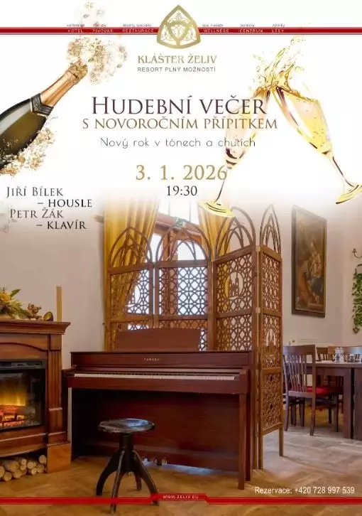 Novoroční hudební večer se odehraje v prostorách klášterní restaurace, kde se historická atmosféra propojí s živou hudbou a pohodovým posezením. Hudební program je koncipován jako nenápadný, slavnostní doprovod večera – vytváří prostor pro setkání, rozhovory i klidné naslouchání. Nejde o klasický koncert, ale o hudební večer s atmosférou, který přirozeně patří k začátku nového roku.