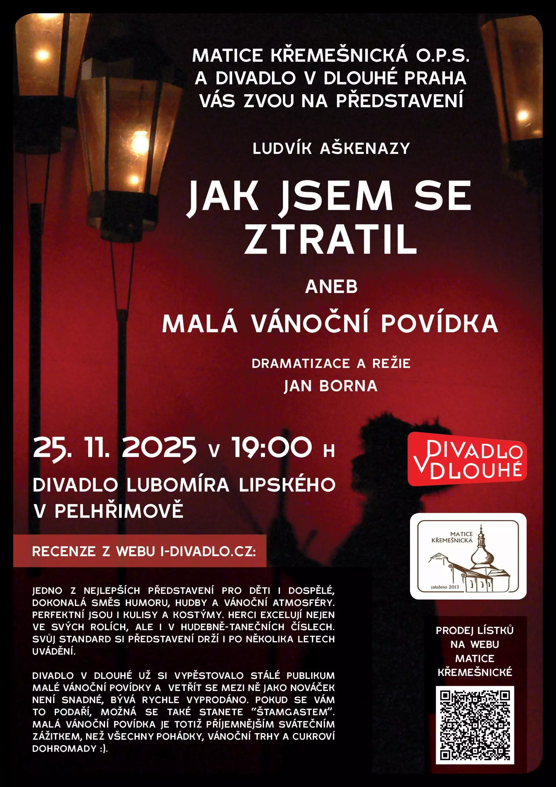 Přijďte si užít příběh plný kouzelné atmosféry, humoru i vánočního poselství. Vánočně laděné divadlení představení, které zaujme diváka všechn věkových kategorií.
