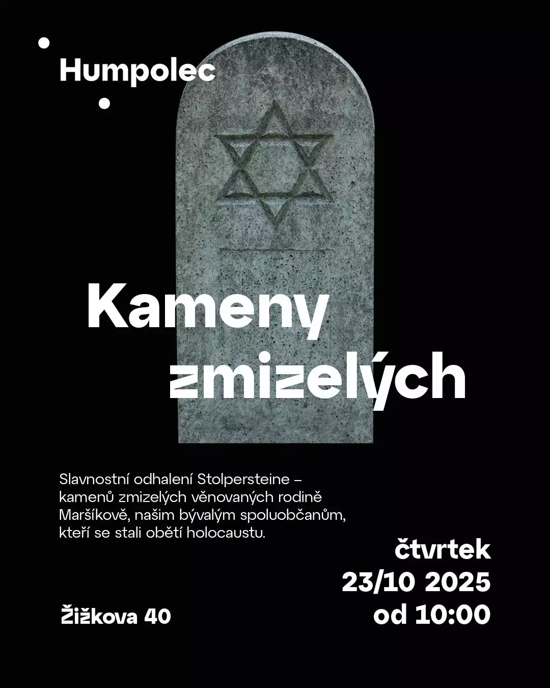 Zveme vás na slavnostní odhalení Stolpersteine – kamenů zmizelých věnovaných rodině Maršíkově, našim bývalým spoluobčanům, kteří se stali obětí holocaustu.