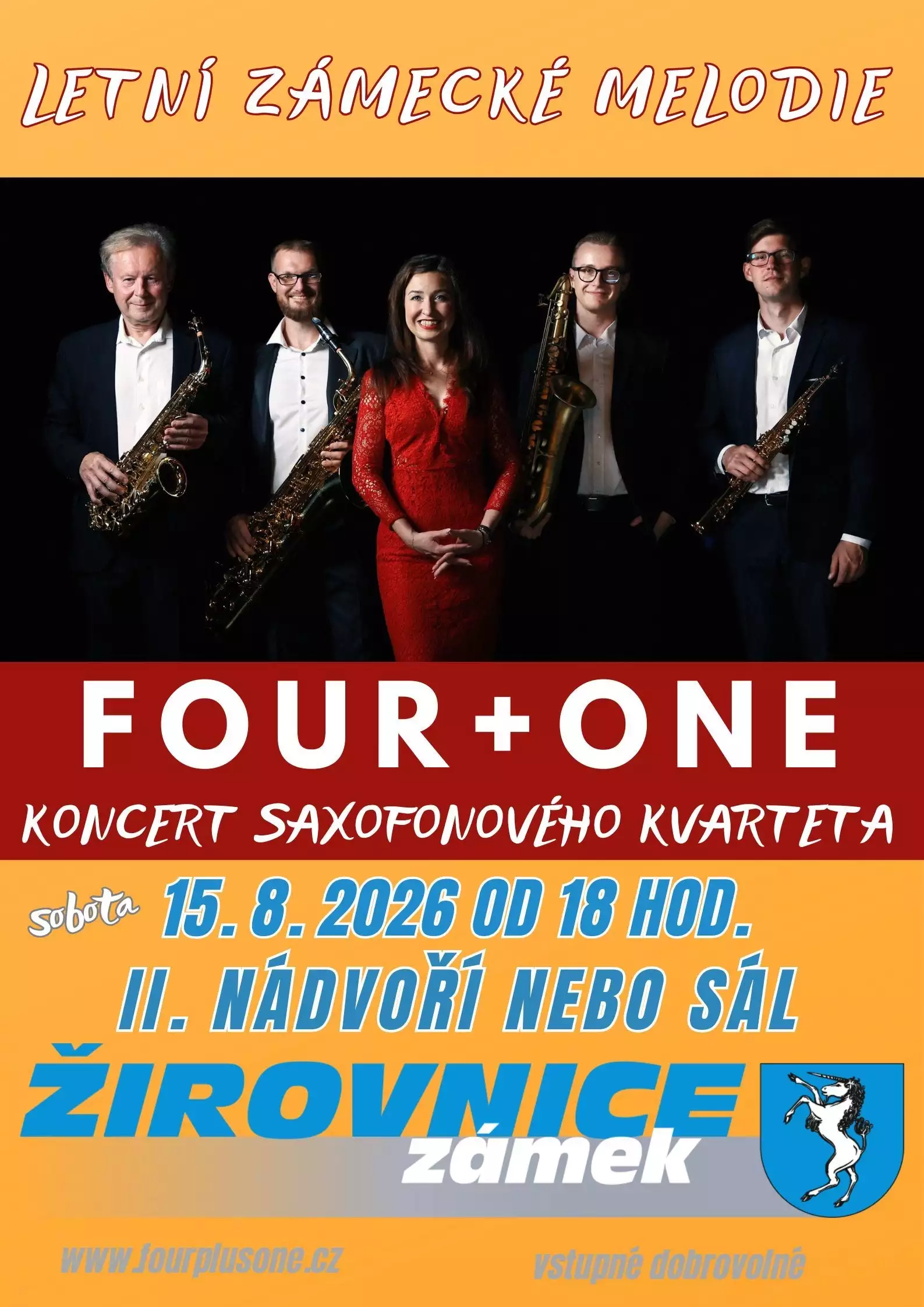 Zveme vás na jedinečný hudební večer v krásném prostředí zámeckých prostor. Saxofonové kvarteto nabídne posluchačům pestrý program plný známých melodií, klasických skladeb i modernějších aranží.