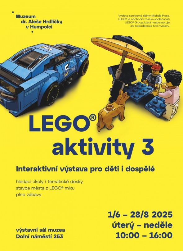 Humpolecké muzeum otevře 1. června, jako dárek k Mezinárodnímu dni dětí novou výstavu LEGO AKTIVITY 3. Jejím autorem je dlouholetý sběratel lega Michal Plos z Českých Budějovic. Na výstavě budou k vidění nejen běžné stavebnice, ale i řada zajímavostí, které nejsou v obchodech k dostání. Obdivovat tak můžete různé dopravní prostředky, draky, roboty, figurky i filmové a pohádkové stavby. Kromě toho vás čeká velká herna, tematické desky a plno zábavy. A protože je výstava určena především pro děti, které si rády hrají, budou součástí výstavy „pískoviště s kostičkami“, kde mohou děti předvést svoji kreativitu a šikovnost při tvoření objektů podle jejich fantazie. Výstava poběží celé prázdniny.