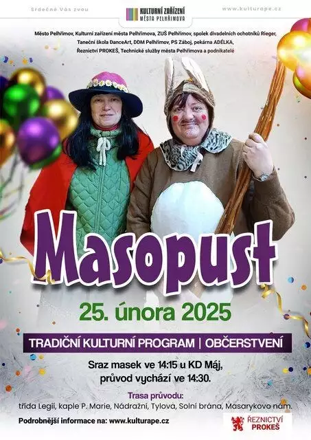 Oblíbený masopustní průvod projde městem v úterý 6. února . Na náměstí nebude chybět tradiční program. Proběhne předání vlády nad městem maškarám , zahraje masopustní kapela a těšit se můžete i na obří tlačenku!