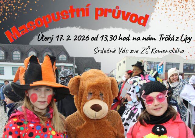 Doba masopustu je tu a i naším městem projde masopustní průvod plný klasických i méně tradičních masek. Průvod se vydá od školy v Komenského ulici až na náměstí.