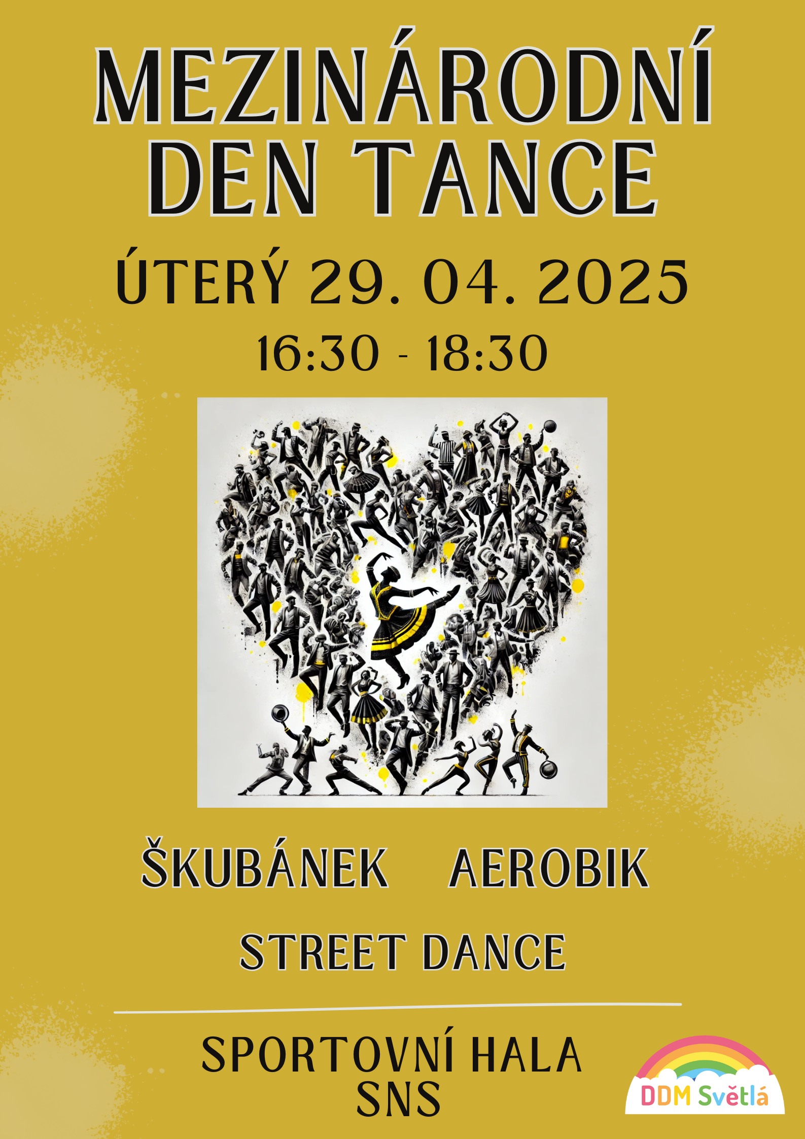 Přijďte oslavit den tance, jak jinak než tancem. Všichni jste srdečně zváni a na všechny se těšíme.