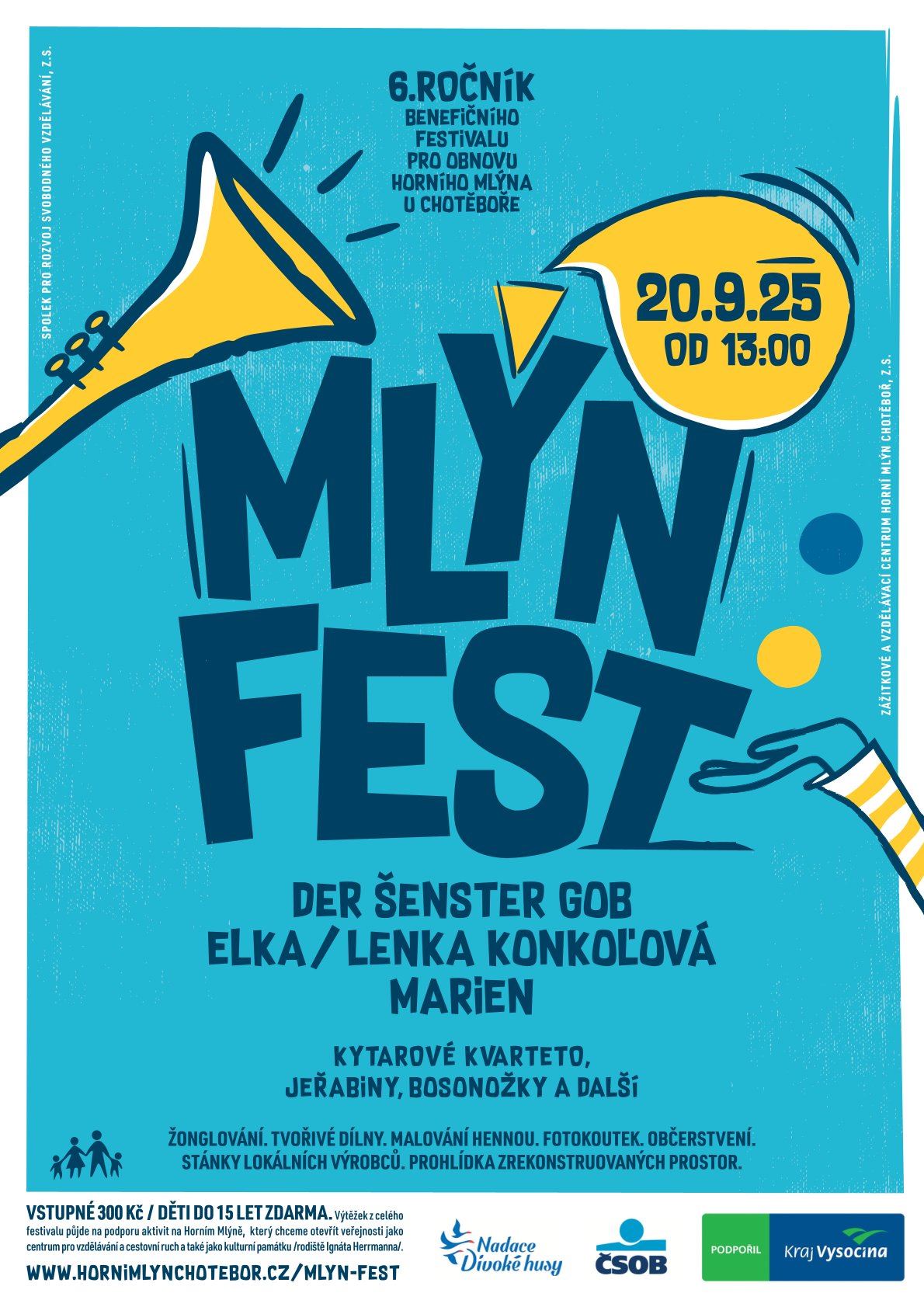 Navštivte už .6 ročník benefičního festivalu pro obnovu Horního Mlýna u Chotěboře.Festivalová sezóna ještě nekončí, protože Mlýn Fest se koná 20. 9. a vy tam nesmíte chybět!
