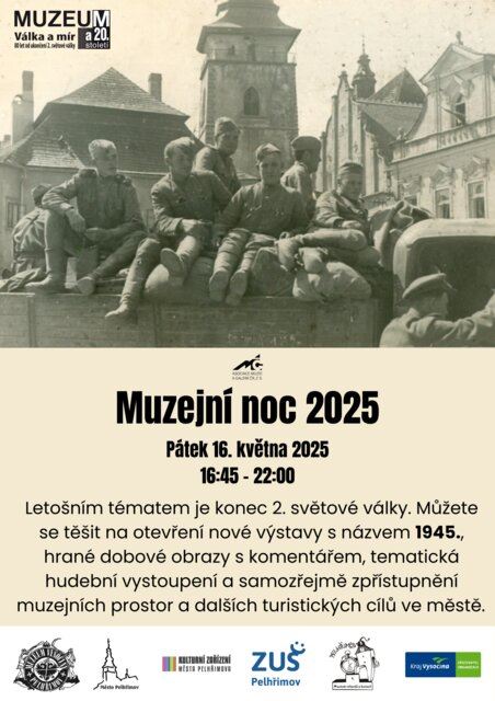 Letošním tématem je konec 2. světové války. Můžete se těšit na otevření nové výstavy s názvem 1945, hrané dobové obrazy s komentářem, tematická hudební vystoupení a samozřejmě zpřístupnění muzejních prostor a dalších turistických cílů ve městě.