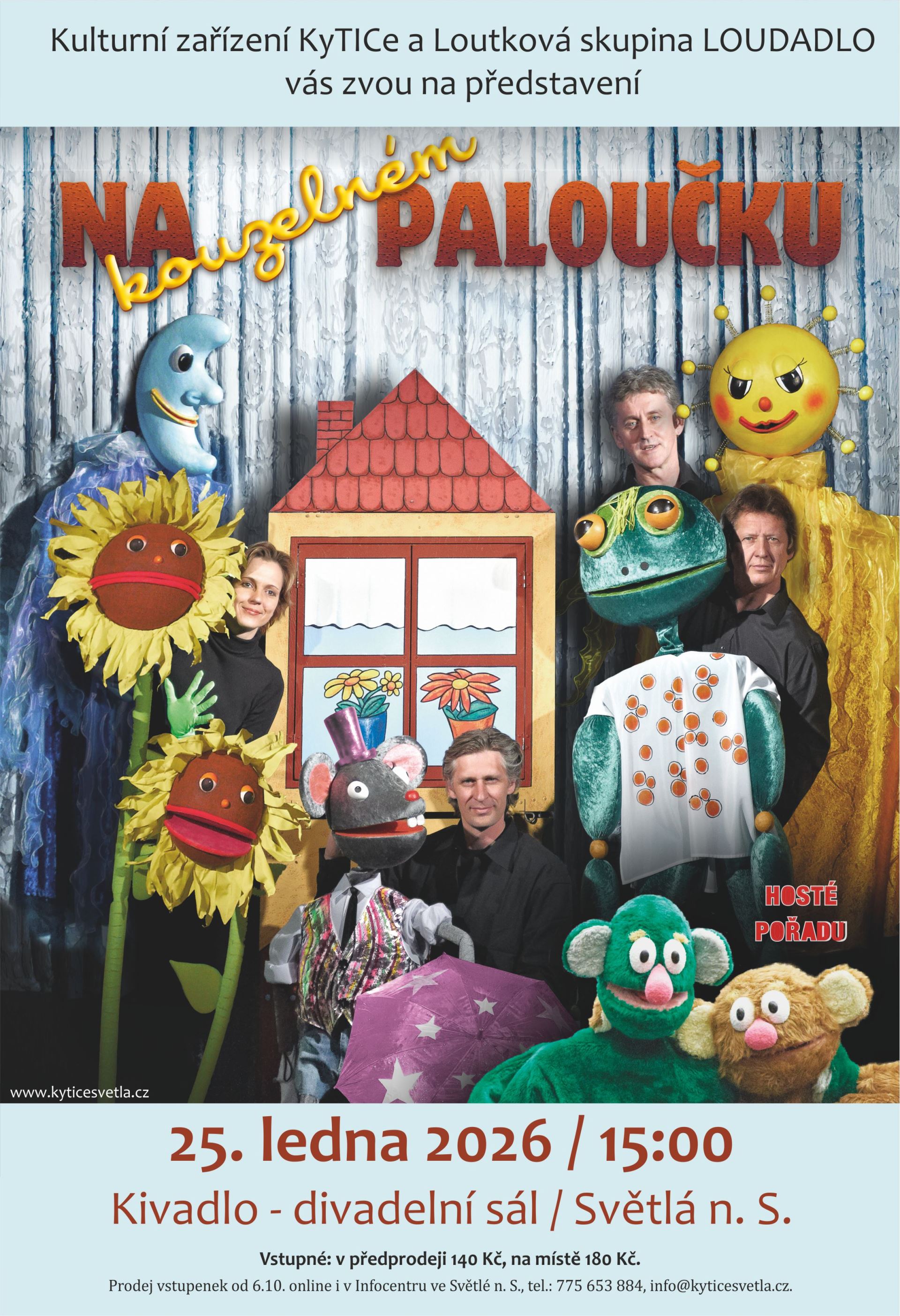 Když zakokrhá kohout, znamená to, že začíná den. Sluníčko slíbí měsíčku, že když už půjde spinkat, bude mu pak vyprávět, co se zatím „Na kouzelném paloučku“ odehrálo. Těší se na vás tančící slunečnice, kamarádi žabáci Kvik a Kvak a neodolatelný „šoumen“ myšák Kiko, který se vám rád předvede v plné parádě! Podíváte se také na rybičky pod hladinou, proletíte se s papírovými draky široko-daleko a na palouček zavítají kamarádi Jů a Hele.