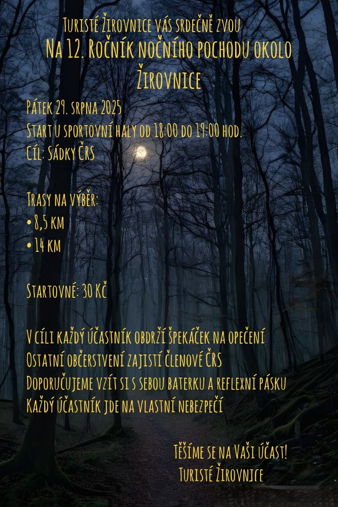 12. ročník NOČNÍHO POCHODU OKOLO ŽIROVNICE odstartuje v samém závěru prázdnin!