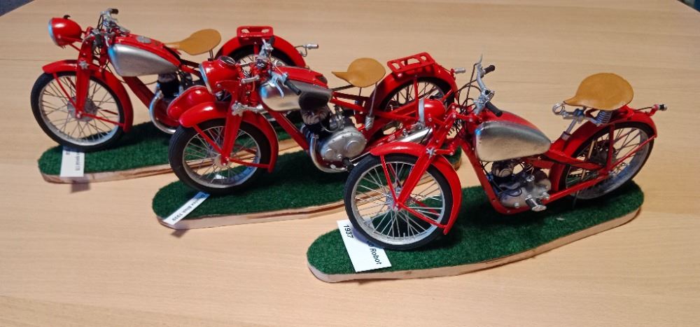 5. Přibudou nám též papírové modely historických motocyklů: Do pelhřimovského Muzea rekordů dorazí historické motocykly: Václav Dohnalík vytvořil v průběhu 10 let kolekci 57 papírových modelů motocyklů z první poloviny 20. století. Tvoří je podle snímků z internetu, z kladívkové čtvrtky a jsou zhotoveny do nejmenších detailů, včetně zapalovacích svíček motoru. Výztuhy v některých částech modelů tvoří drátek o síle 1 mm. Vytvoření jednoho modelu o délce cca 30 cm trvá od tří měsíců do půl roku. Část své sbírky nám zapůjčí do expozice.