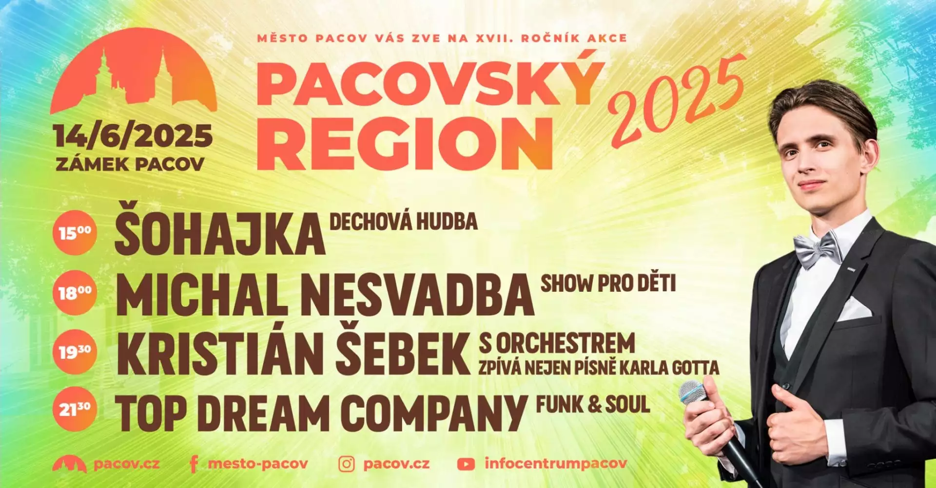 - 19.30 – Kristián Šebek s orchestrem zpívá nejen písně Karla Gotta