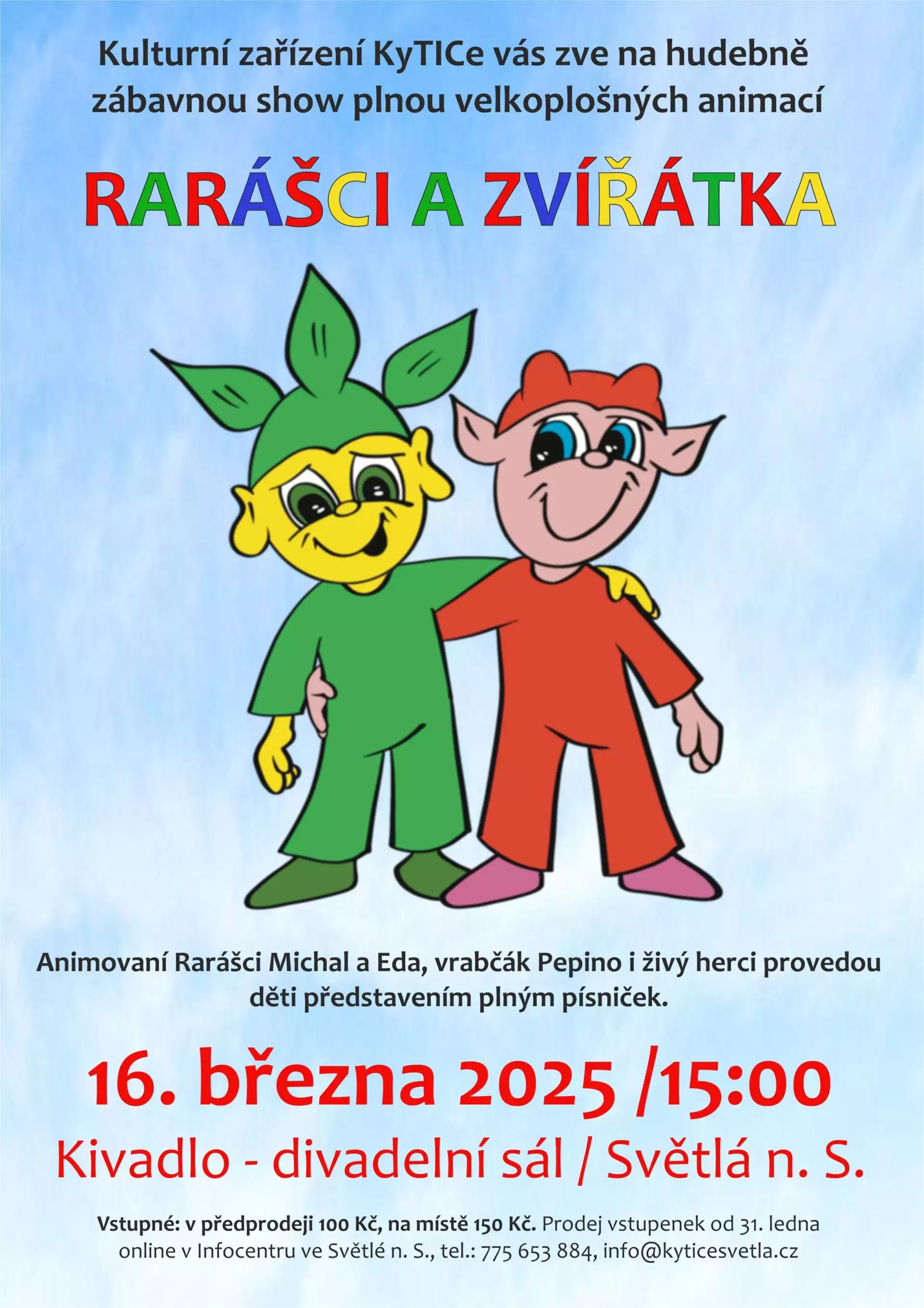 Celým přestavením provází animovaní Rarášci Michal a Eda a vrabčák Pepino. Děti se učí zábavnou formou s písničkami odečítat s beruškou a zvířátky tečky (matematika), o zvířátkách v Africe (přírodověda), o zvířátkách v české přírodě a na statku, jaká platí pravidla mezi včelkami ve včelím úlu, proč nosit přilbu a chrániče při jízdě na koloběžce, zacvičí si s Rarášky (tělocvik).