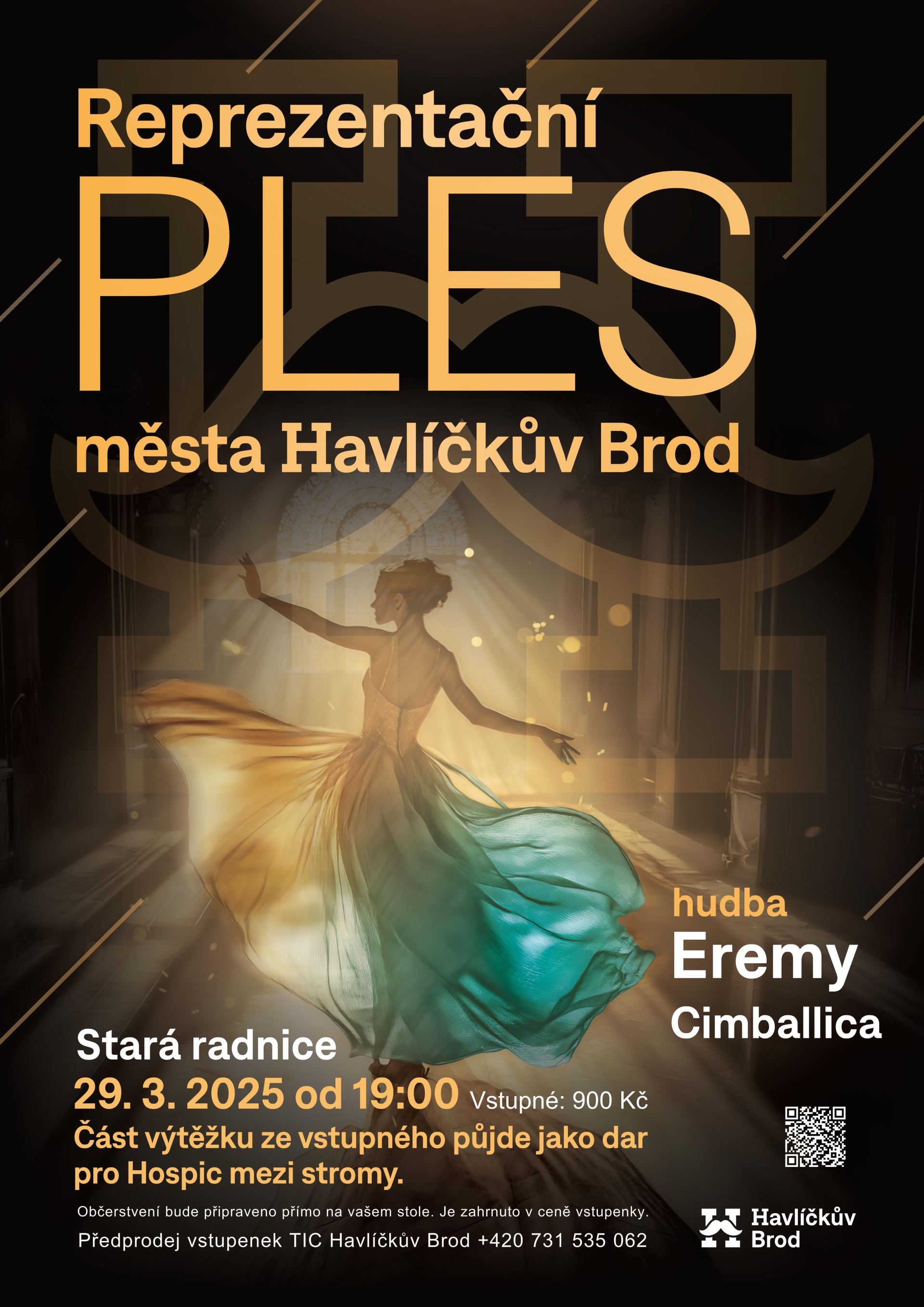 První reprezentační ples města Havlíčkův Brod roztančí všechny sály díky úžasným kapelám Eremy a Cimballica.