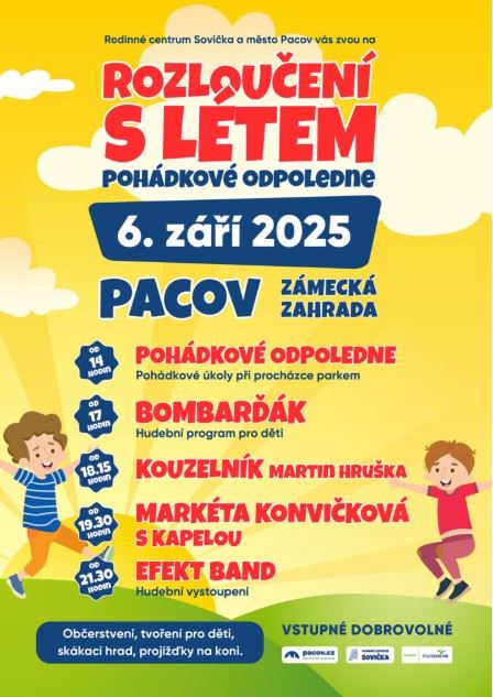 Rodinné centrum Sovička Pacov a město Pacov Vás zvou na Pohádkové odpoledne & Rozloučení s létem
