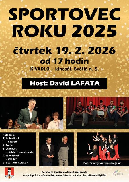 V divadelním sále Kivadla ve Světlé nad Sázavou budou oceněni jednotlivci, trenéři, osobnosti a kolektivy světelského sportu, kteří byli nominováni zástupci klubů a Komisí pro koordinaci sportů. Pozvánku na akci přijal pan David Lafata, bývalý český profesionální fotbalový útočník a reprezentant ČR.