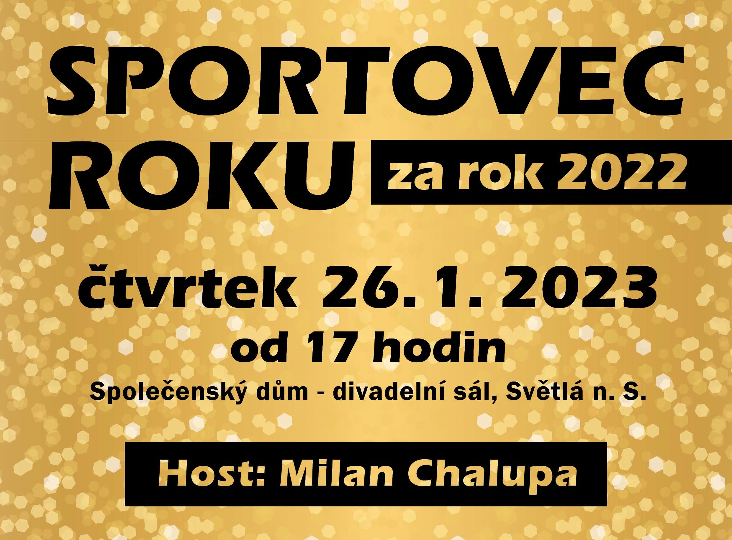 Vyhlášení Sportovce roku 2022 se uskuteční v divadelním sále Společenského domu ve Světlé nad Sázavou. Čeká Vás bohatý doprovodný kulturní program a speciální host Milan Chalupa.
