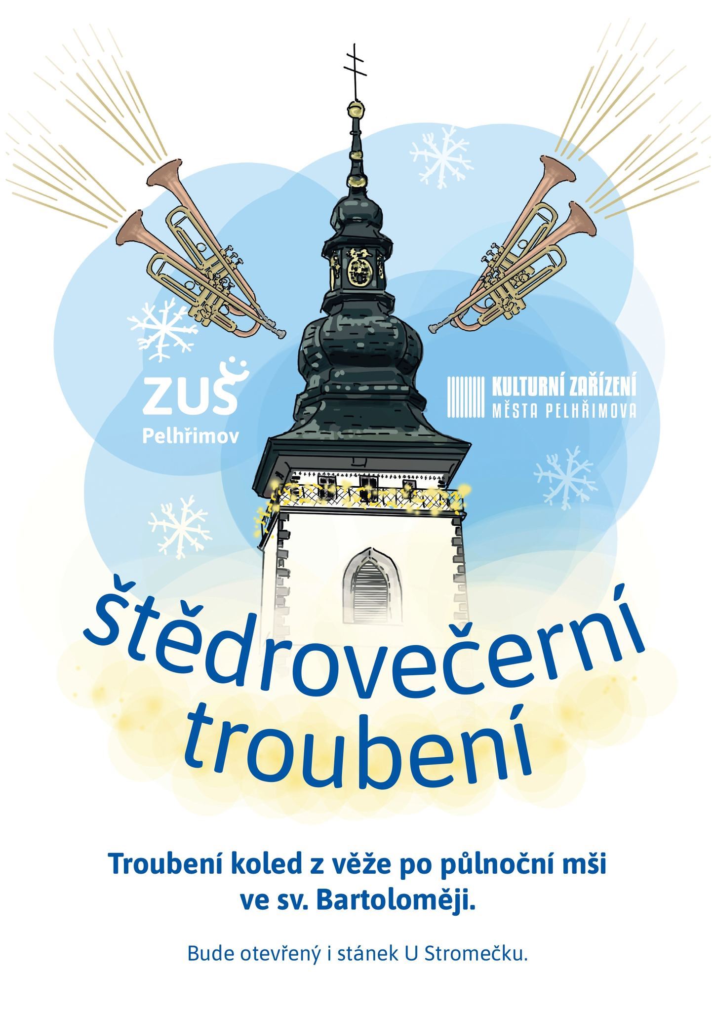 Po půlnoční mši svaté zazní z věže kostela sv. Bartoloměje troubení vánočních koled jako radostná zvěst o narození Páně.Ať jejich hlas přinese do vašich domovů pokoj, radost a naději.