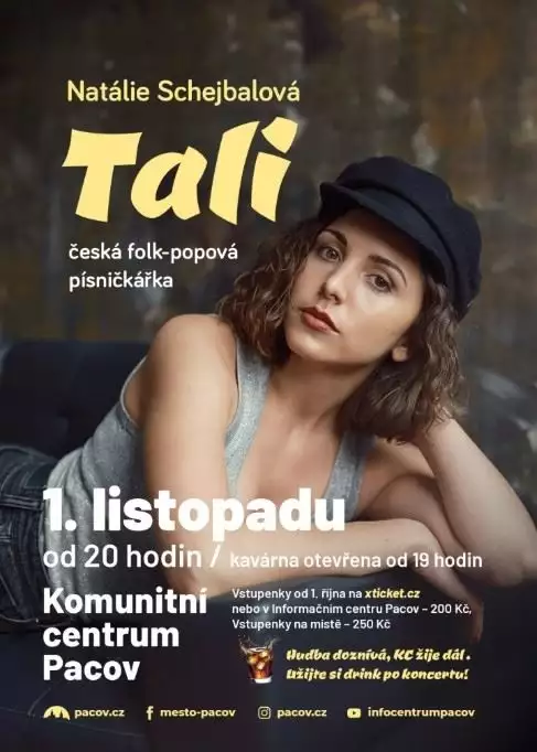 Město Pacov Vás zve na vystoupení české folk-popové písničkařky Natalie Schejbalové známe jako Tali.