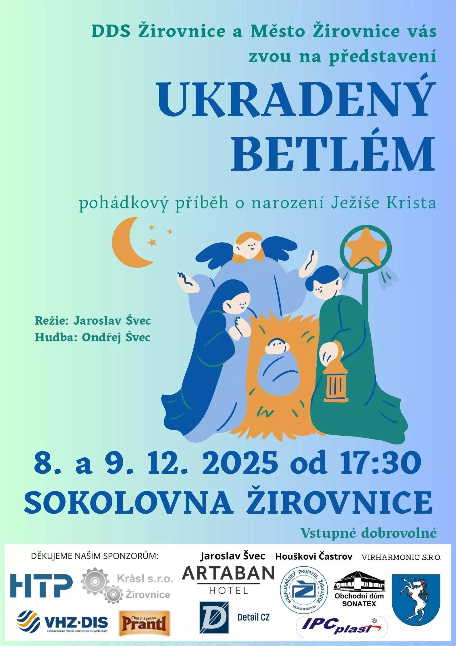 Přijďte se vánočně naladit a shlédnoutn pohádkový příběh o narození Ježíše Krista v podání DDS Žirovnice.