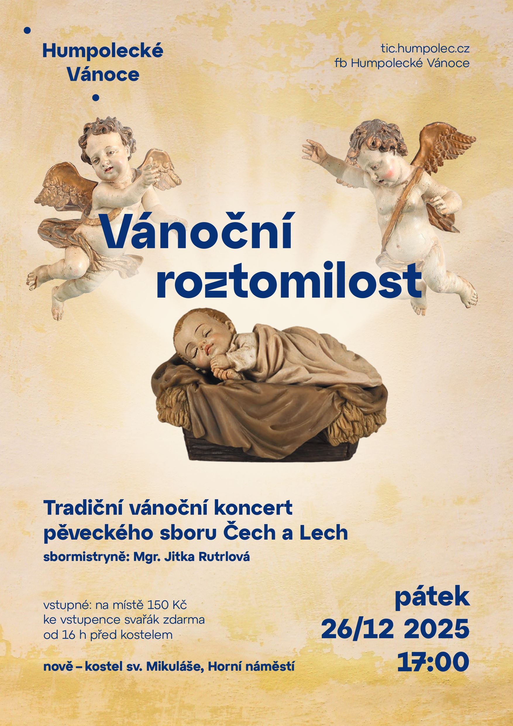 Zveme vás na tradiční vánoční koncert pěveckého sboru Čech a Lech pod vedením sbormistryně Jitky Rutrlové. Přijďte si poslechnout koledy a vánoční skladby a zazpívat si v krásném vánočním čase.