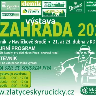 Největší jarní prodejní výstava všeho, co užijete na zahradě od sazeniček, semínek, kytiček, stromků až po nářadí či strojů, dokonce i nábytek. Najde zde zastoupení různých firem a značek. Zahrada je uvnitř areálu KD Ostrov a těšit se můžete na doprovodný kulturní program.