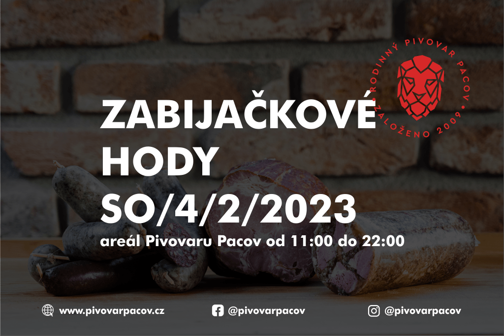 Vychytaný gastronomický zážitek pro gurmány připravil Pivovar PacovNenechte si ujít ZABIJAČKOVÉ HODY v sobotu 4.2. 2023 Termín: sobota 4.2. 2023Čas: 11:00 – 22:00 hod.Kde: areál Pivovaru Pacov DOBROU CHUŤ!