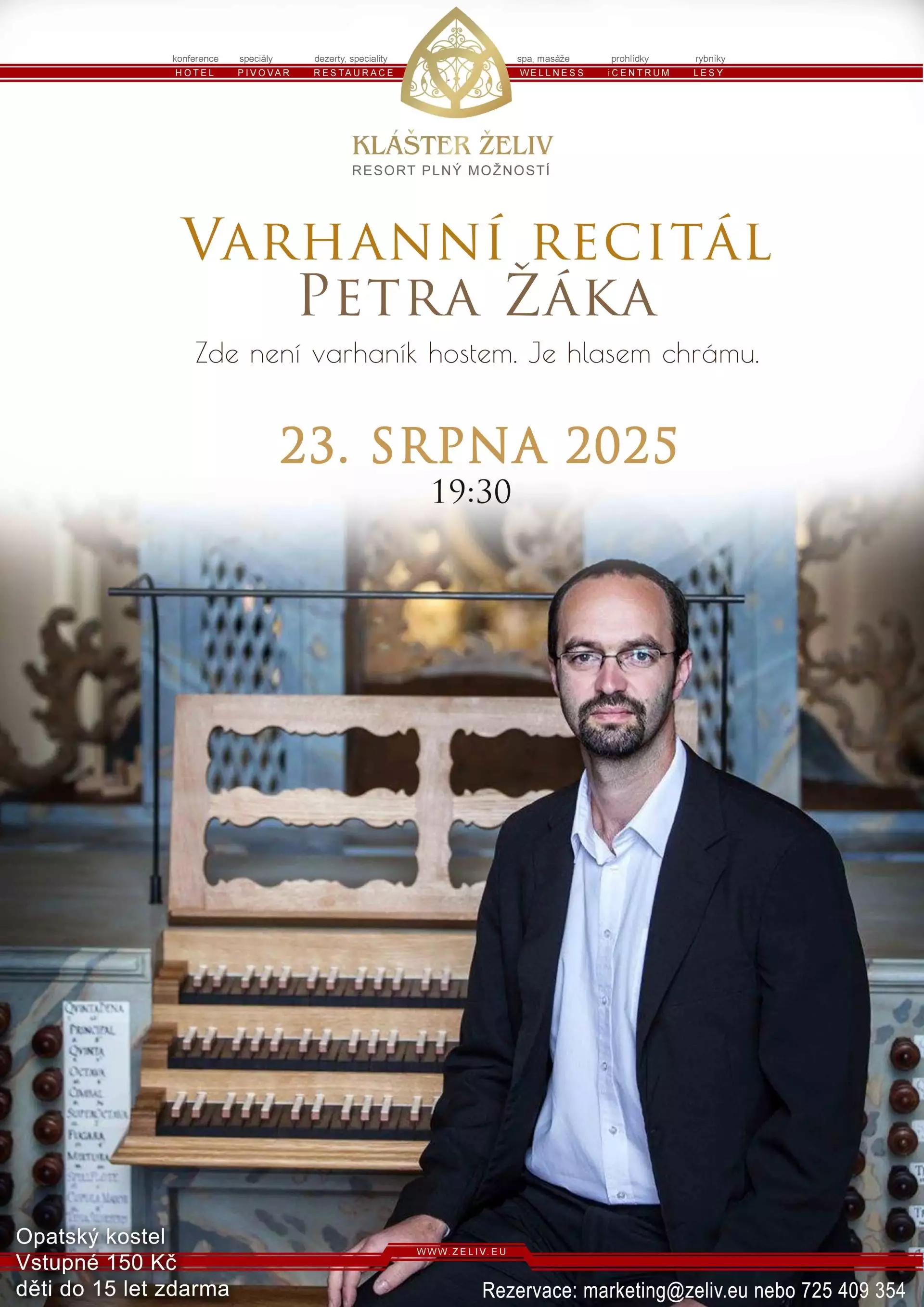 Závěr srpna nabídne další mimořádný hudební večer v rámci festivalu Želivské kulturní léto 2025. Tentokrát se v hlavní roli představí želivský varhaník Petr Žák, který rozezní varhany opatského kostela při svém varhanním recitálu.