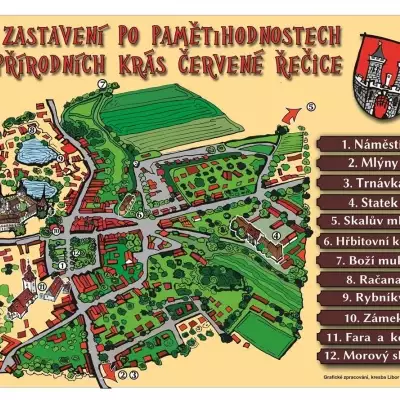 Přidat do oblíbenýchNově rekonstruovaný zámek Vás jistě přiláká k návštěvě města Červená Řečice nedaleko od Pelhřimova. Panské sídlo je součástí tří kilometrové naučné stezky Po pamětihodnostech a krásách Červené Řečice. Celkem je po městě a jeho okolí rozeseto 12 zastavení, která přibližují součanost i historii Červené Řečice. Informační tabule Vás zavedou na čtvercové náměstí, k morovému sloupu nebo k řece Trnávce. Trasa je vhodná pro pěší i cyklisty, přístupná je celoročně. Při návštěvě města se nezapomeňte zúčastnit i komentovaných prohlídek interiérů a exteriérů zámku.