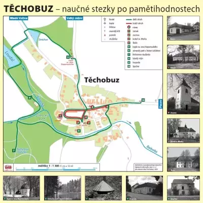 Přidat do oblíbenýchProzkoumejte obec Těchobuz ležící mezi Mladou Vožicí a Pacovem na Vysočině. V obci žil dlouhá léta učenec Bernard Bolzano a těchobuzské hutě vzešel také sklářský rod Kavalírů. Naučná stezka seznamuje s historickými stavebními památkami v obci Těchobuz a další zajímavostmi v okolí. Stezka je zpřístupněná celoročně a čeká zde na Vás celkem 13 zastavení. Vybrat si můžete z dvou okruhů - kratšího a delšího.