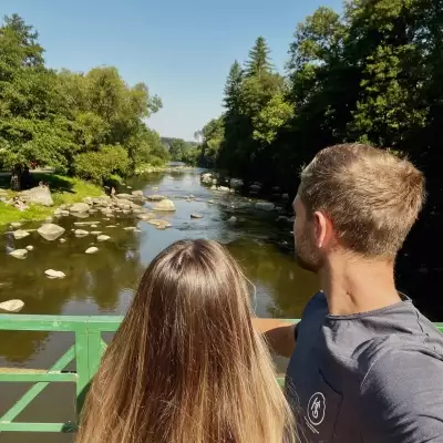 Boží výhledy z rozhledny, posezení na obří lavičce, nádherný kamenný most u hradu či střed Evropy a mnoho dalšího.