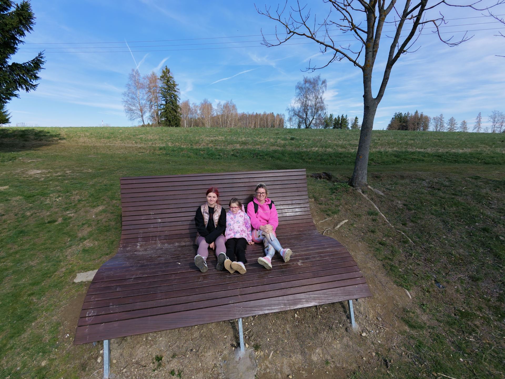 Stezka vás provede klidnou krajinou, kde se střídají lesní úseky s otevřenými výhledy. Není to žádný sportovní výkon, ale spíš pozvánka zpomalit. Děti budou nadšené z objevování, dospělí ocení ticho a prostor na nadechnutí. A pak přijde ten moment – najednou před vámi vyroste lavička, která jako by patřila obrům.