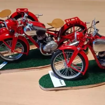 Přibudou nám též papírové modely historických motocyklů: Do pelhřimovského Muzea rekordů dorazí historické motocykly: Václav Dohnalík vytvořil v průběhu 10 let kolekci 57 papírových modelů motocyklů z první poloviny 20. století. Tvoří je podle snímků z internetu, z kladívkové čtvrtky a jsou zhotoveny do nejmenších detailů, včetně zapalovacích svíček motoru. Výztuhy v některých částech modelů tvoří drátek o síle 1 mm. Vytvoření jednoho modelu o délce cca 30 cm trvá od tří měsíců do půl roku. Část své sbírky nám zapůjčí do expozice – děkujeme velice!