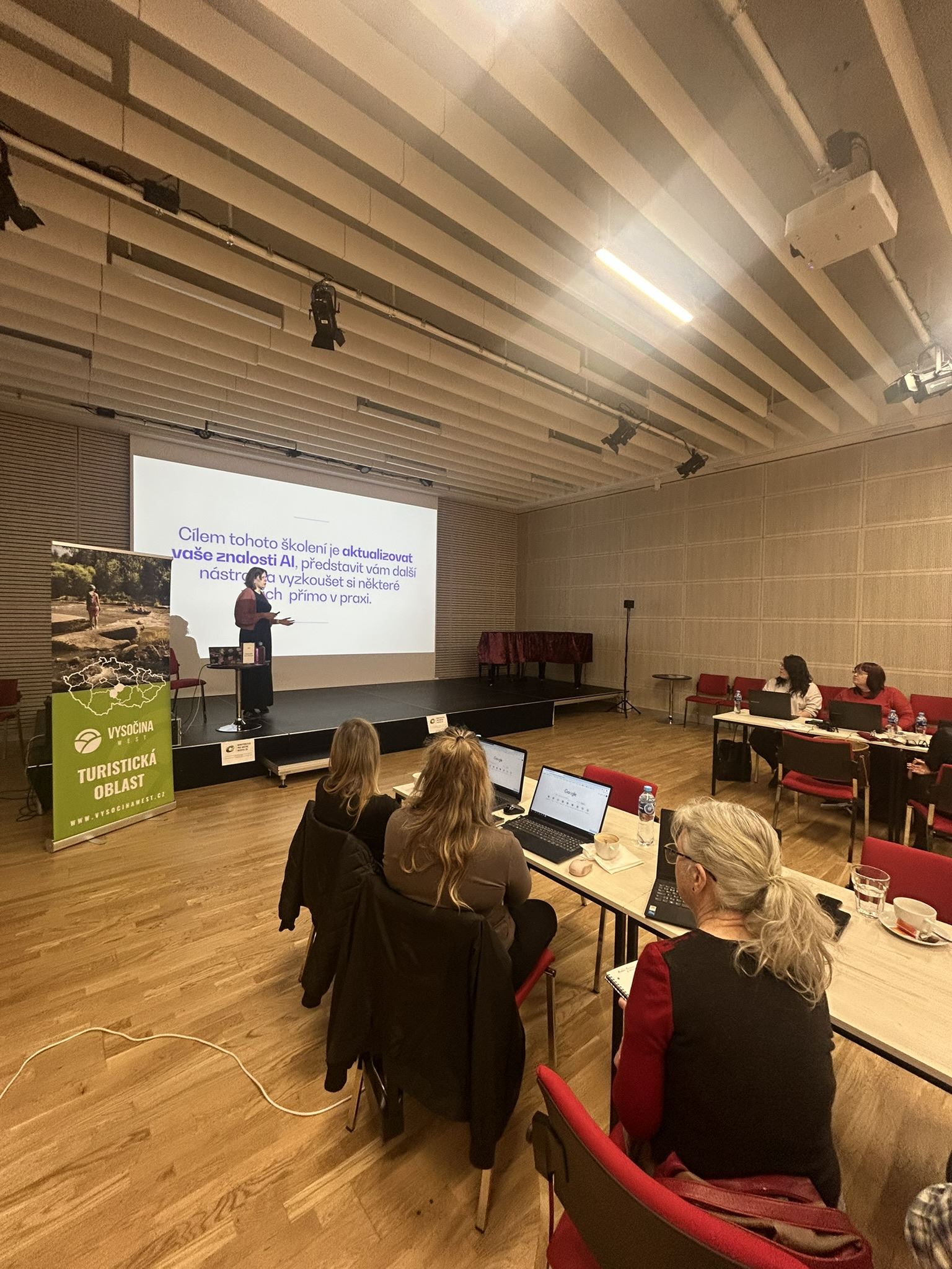 Setkání nabídlo nejen teoretický vhled do světa AI, ale především praktické ukázky jejího využití v oblasti cestovního ruchu, marketingu a komunikace. Odborného vedení se ujala zkušená lektorka Markéta Linhart MSc., která si účastníky získala svým profesionálním přístupem, srozumitelným výkladem a především schopností aktivně zapojit všechny přítomné.