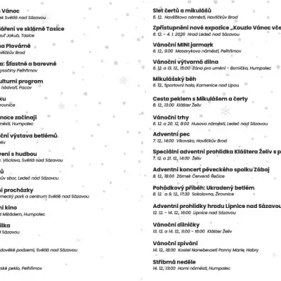 Vánoční přehled vznikl ve spolupráci s obcemi, kulturními zařízeními a pořadateli akcí z regionu.