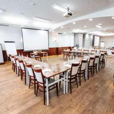 S kapacitou 120 osob poskytuje velký sál prostředí i pro náročné klienty. Sál se nachází v přízemí hotelu, disponuje vlastním barem a je vybaven kvalitní audiovizuální technikou. V sálu nechybí dostatek denního světla. Uspořádání sálu (divadlo, škola, "U" apod.) jsme schopni připravit dle Vašich požadavků.