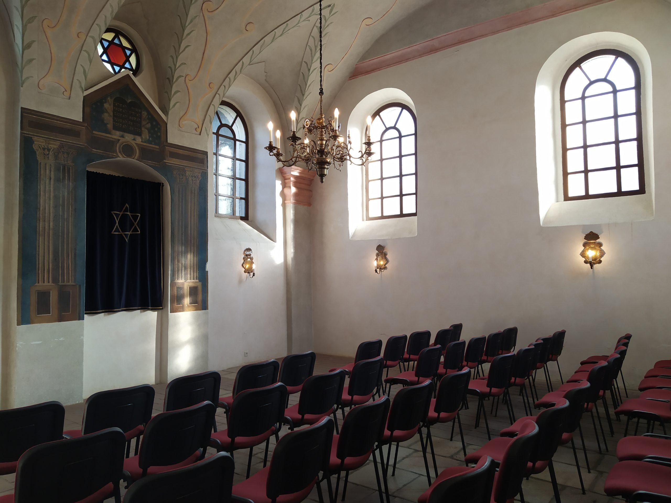 Synagoga se nachází nedaleko náměstí a má bohatou historii. Interiér nabízí pozoruhodné klenby, štukovou výzdobu a postranní ženskou galerii.