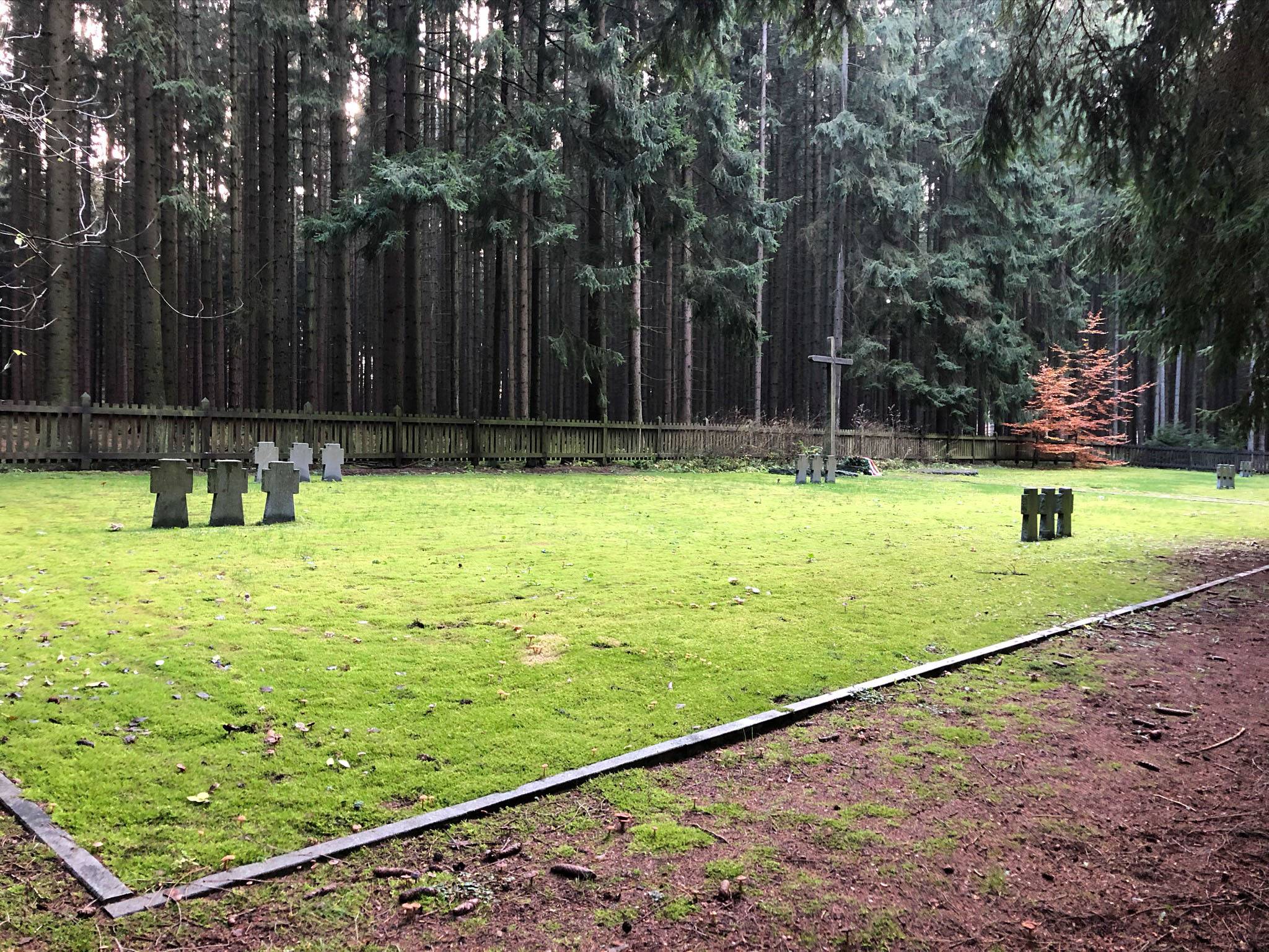 V lese ukrytý malý vojenský hřbitov byl založen během 2. světové války pro zemřelé německé vojáky v bývalém nedalekém zajateckém táboře. Hřbitovu obdélníkového tvaru dominuje velký dřevěný kříž, několik pomníků a sedm trojic kamenných křížů. Hřbitov je chráněn jako nemovitá kulturní památka České republiky a pečuje o něj kromě města Pacov také německý spolek pro péči o válečné hroby.