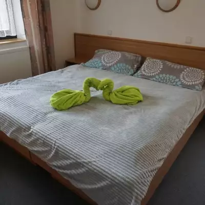 Přidat do oblíbenýchRezervovat Nově zrekonstruovaný hotel se nachází v malebném prostředí lesů na jednom z nejvyšších vrcholů Českomoravské vysočiny zvaném Křemešník (10 km od Pelhřimova). Křemešník je známé, mnoha pověstmi opředené, poutní místo s turisticky velmi atraktivními pamětihodnostmi (viz. Kam na výlet). Salonek pro 60 osob nabízí využití pro účely kongresové turistiky a je vynikající příležitostí k uspořádání nejrůznějších společenských a kulturních akcí. „Kamenný sklípek“ pro 12 osob v samotném nitru hotelu je ideálním místem pro setkání s vašimi obchodními partnery, přáteli, či menší rodinnou oslavu. Na výsledcích kulinářského umění našich kuchařů si můžete pochutnat v hotelové restauraci s kapacitou 80 míst.